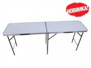 Размеры стола(д*ш*в): 298*60*78 см Размеры стола в сложеном виде (д*ш*в): 100*60*10 см Материалы стола: Алюминий, МДФ 4,2 мм Диаметр алюминиевой трубы: 22 мм Вес: 10,3 кг