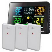 Bresser Quadro NLX ‒ это домашняя метеостанция с тремя выносными термо/гигро датчиками, что позволяет измерять температуру и влажность воздуха в четырех разных местах. Метеостанция оснащена цветным дисплеем, который разделен на блоки с информацией для каждого термо/гигро сенсора.