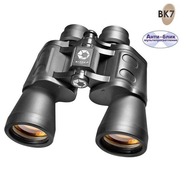 Бинокль Barska X-trail 20x50 WA имеет резиновое покрытие корпуса, поглощающее мелкие удары. Все оптические поверхности покрыты просветляющим покрытием. Внешняя поверхность линз объектива имеет многослойное просветление, в состав которого входит и рубиновое покрытие, отсекающее ультрафиолетовый спектр и делающее картинку более чёткой. Призмы изготовлены из оптического стекла BK7. Резкость изображения регулируется центральным колесом. Данная модель имеет 20х увеличение, что в сочетании с большим диаметром объектива даёт возможность довольно отчётливо различать объекты на расстоянии более 1000 метров.