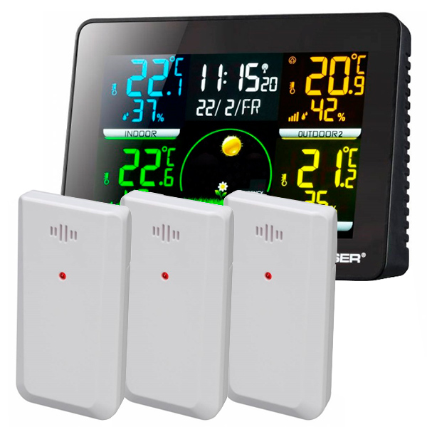 Будьте первым! Поставьте оценку, оставьте отзыв о товаре Погодная станция Bresser Quadro NLX Colour Black с 3 датчиками: