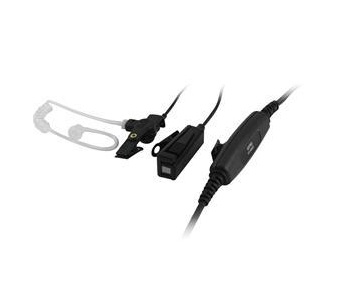 Гарнитура представляет собой головной телефон с прозрачным воздуховодом, с клипсой для крепления на одежду, микрофон с клипсой на одежду и кнопка PTT на отдельном проводе.