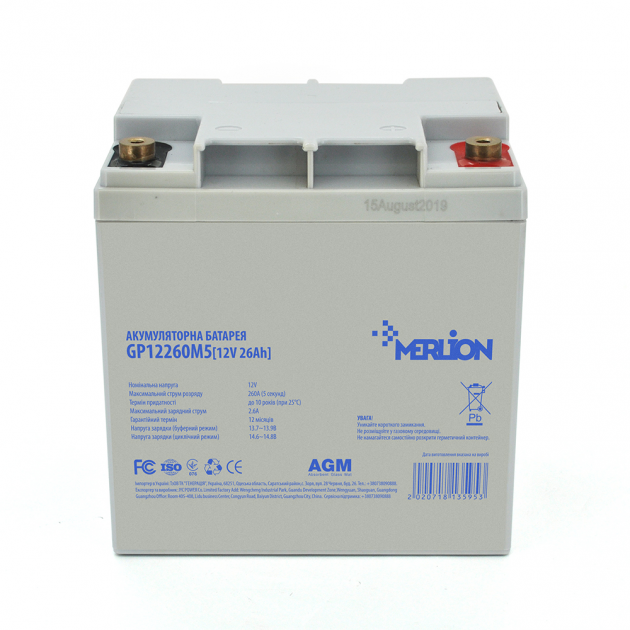 Аккумуляторная батарея для источника бесперебойного питания является неотъемлемым элементом, благодаря ей, оборудование продолжает работать при отключенной электроэнергии. Аккумуляторные батареи встраиваются в ИБП и практически не требуют никакого обслуживания. MERLION - это свинцово-кислотная, необслуживаемая батарея с номинальным напряжением соответствующим заявленному. Также данная батарея характеризируется низким уровенем саморазряда. Назначение: источники бесперебойного питания, централи, охранные сигнализации. Дополнительные характеристики: электролит имеет гелеобразное состояние, не боится наклона и переворота. В зависимости от функционирования ИБП, аккумуляторные батареи MERLION при необходимости автоматически подзаряжаются в любое время, когда источник подключен к сети.