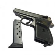 Магазин двухрядный и вмещает 6 патронов калибра 9 мм, при надобности, можно оставить дополнительный патрон в патронник и получить 6 зарядов.