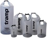 Классический гермомешок объемом 20 л. изготовленный из прозрачного армированого материала терпаулин с PVC покрытием.