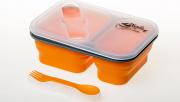 Дорожный складной контейнер для еды на 2 отдельных отсека из пищевого силикона объемом 900 млл, может использоваться как походная миска, ланч-бокс. В комплекте – небольшая ловилка