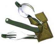 Набор столовых приборов (ложка-вилка-нож) туристический. Набор упакован в удобный, качественный чехол из прочного материала 600D Polyester Rip Stop.