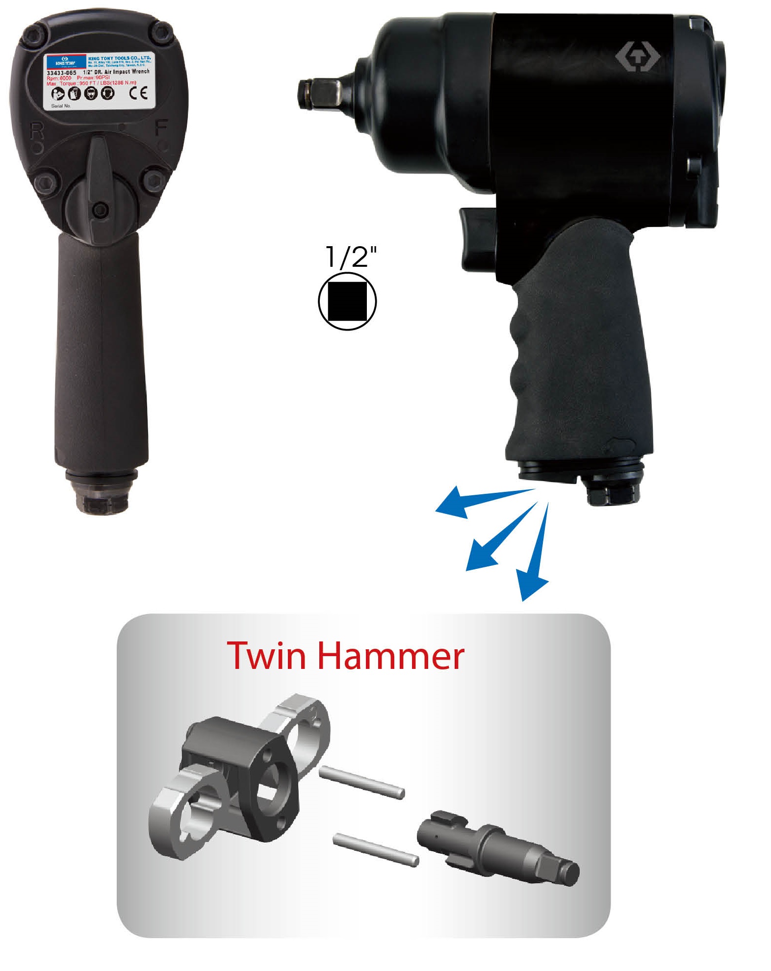 Пневматический гайковерт 1/2" мини 678 Нм с набором головок.
