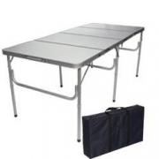 Изготовлен из стальных прямоугольных трубок 40х20мм с порошковым напылением. Верхняя крышка стола изготовлена из МДФ. Кухонный стол с боковой полкой и боковым дополнительным столиком. Складывается до компактных размеров для удобной транспортировки. Размеры: 145х52х63/178,5см. Вес: 11,5кг. Допустимая нагрузка: 50кг. Размер упаковки: 94,5х52х13см.