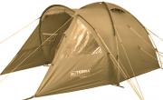 Кемпинговая 5-х местная палатка, с разделяемым спальным отсеком. Большой тамбур на дополнительной дуге с полом, наличие двух входов, позволят использовать её как в базовом лагере, так и для семейного отдыха на природе. Москитная сетка на входе в спальное отделение, проклеенные швы тента, вентиляционный клапан.
