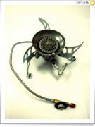 Экономичная туристическая горелка со шлангом, с устойчивым корпусом позволяющим готовить еду в больших котелках, встроенным ветрозащитным экраном и пьезоподжигом.