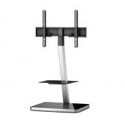 Стойка Sonorous PL 2710-GRP-SLV под телевизоры с универсальным поворотным (на 35°) креплением системы VESA до 600×400. Верхняя часть основания (весом в 30 кг) покрыта закаленным стеклом с закругленными углами и полированной алюминиевой кромкой. Поворотное крепление подходит для всех видов плоских телевизоров (LCD, LED и плазма). Дополнительно есть полка из закаленного стекла для ТВ тюнера или ДВД плеера. В единственной ножке расположен канал для маскировки проводов и кабелей. Стойка предназначена для установки телевизоров с диагональю 37-65 дюймов (весом до 30 кг). Крепление VESA поддерживает форматы 200×200, 300×300, 400×400, 600×400. Цвет стекла основания можно выбрать из таких вариантов: белый, черный, красный, графит.