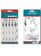 Для прямых пропилов. Зубья остроконечные под свободным углом, шлифованные. Идеально подходят для прямых, тонких пропилов в фанере, ламинированных ДВП, твердой и мягкой древесине, клеенной древесине, пластике. "Обратный срез"