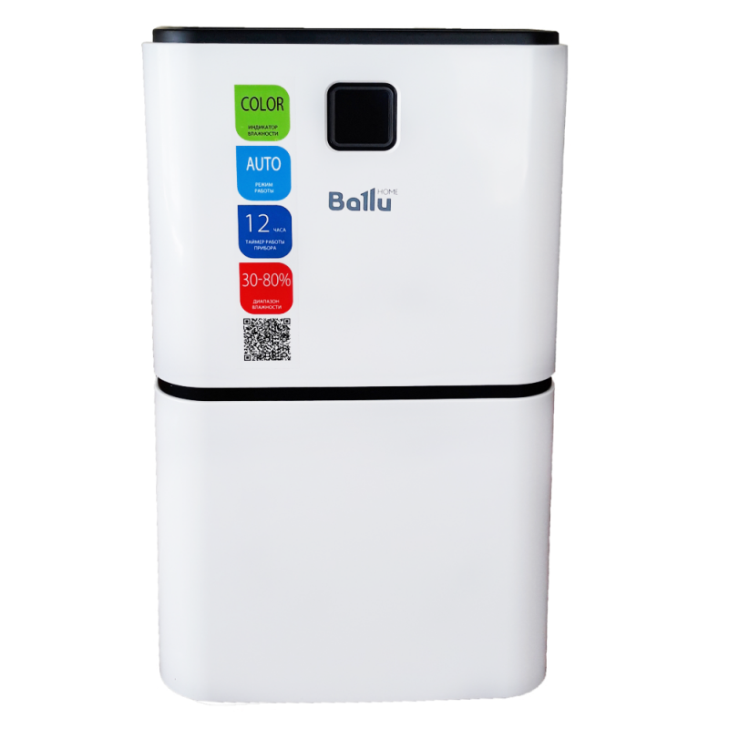 Осушитель воздуха Ballu BD10U имеет мощность 240 Вт и производительность по осушению 10 л/сутки, что оптимально для стандартной жилой комнаты площадью 17 м². Модель отличается элегантным исполнением, компактными размерами, функциональностью, низким уровнем шума и имеет 3 режима работы: осушение воздуха, ионизация воздуха, вентиляция. Встроенный гигрометр позволяет прибору с высокой точностью контролировать и поддерживать здоровую влажность в доме.