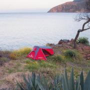 Палатка Ferrino Lightent 2 Red относится к серии ультралегких палаток Ferrino Lite. Данная модель наиболее подойдет для походов в теплое время года, внутренняя палатка полностью состоит из москитной сетки, её можно использовать отдельно от внешнего тента в теплые ночи. Внешний тент имеет ярко-красный цвет, таким образом палатка будет легко узнаваема и различима на фоне любого рельефа, а также на солнце будет нагреваться меньше, чем модели с темным тентом. Туннельная конструкция данной палатки обеспечивает минимальный вес при большом объеме внутреннего пространства, чему содействуют и предварительно изогнутые дуги. Установка такой палатки занимает минимум времени и потребует минимум места. Не смотря на то что палатка двухслойная и имеет тамбур, ее вес в сборе составляет менее девятисот грамм в расчете на человека.. Водозащита внешнего тента и пола составляет 3000 мм в. ст., что вдвое превышает нормативные требования к водозащитным палаткам и вполне хватает, чтоб сохранить палатку внутри сухой во время дождя средней интенсивности. Эффективная система вентиляции Camera Air дополнена двумя вентиляционными окнами, что поможет избежать образования конденсата. Чехол палатки имеет компрессионные стяжки, что позволяет добиться весьма компактных размеров упакованной палатки.