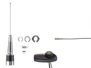 Подпружиненная четвертьволновая врезная антенна UHF-диапазона (70 см) требующая индивидуальной настройки после установки. В корпус крепления встроена вторая, приемная антенна предназначенная для радиостанций оснащенных приемниками системы глобального позиционирования стандарта GPS.