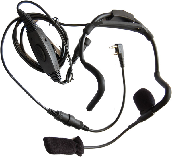Армейская гарнитура с заголовным креплением, кнопкой РТТ с регулятором громкости в линии и микрофоном на эластичной штанге