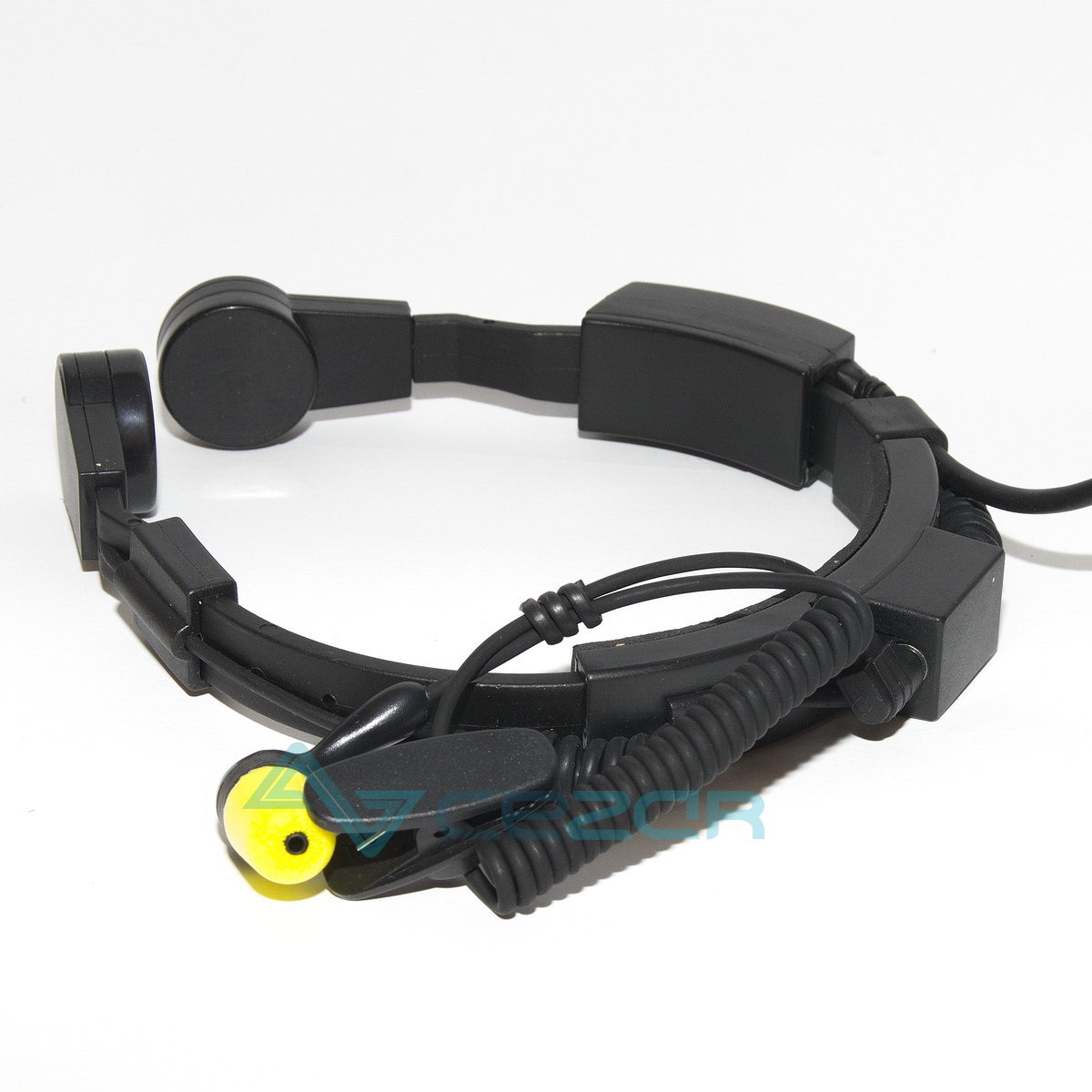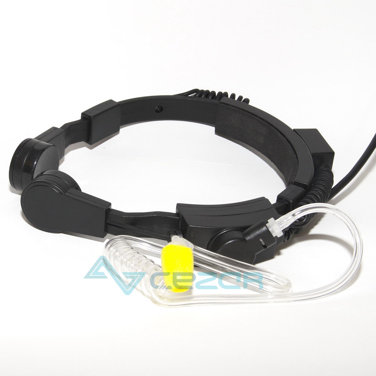 Ларингофон с прозрачным звуководом,ушным звукоизолируюшим динамиком на витом кабеле с Vox/РТТ в линии и РТТ на палец,с возможностью изменения конфигурации