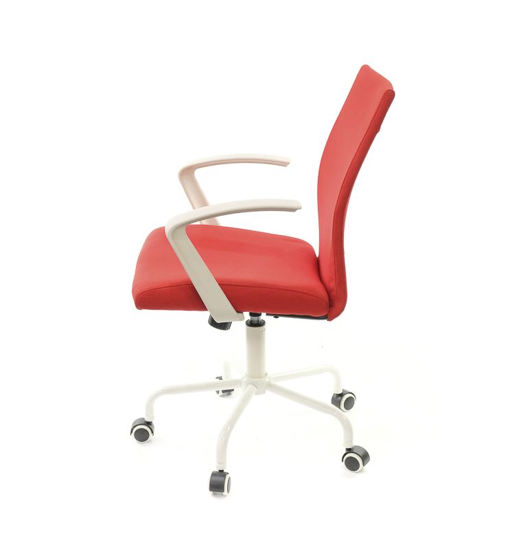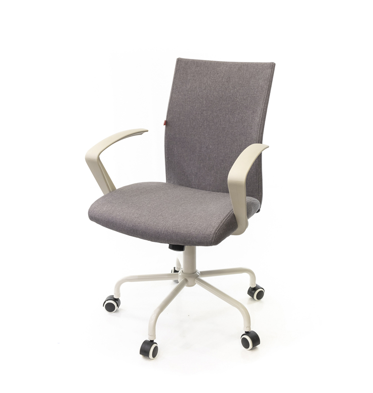 Подлокотники. У данной модели стильные массивные подлокотники оригинальной формы из белого пластика. Они имеют горизонтальную рабочую поверхность, что позволяет удобно разместить руки и снять излишнюю нагрузку с плечевых суставов. Изящная крестовина кресла Арси изготовлена из металла, окрашенного в белый цвет. Крестовина 5-ти лучевая, укомплектована роликовыми опорами. Унивесальные прорезиненные ролики обеспечат креслу необходимую мобильность и подойдут для всех типов напольных напольных покрытий. Удобная эргономичная спинка имеет прогиб в поясничной области, который обеспечивает вашей спине комфортную поддержку, а вам хорошее самочувствие даже в конце насыщенного рабочего дня. В сидении кресла используется прочное основание из гнутоклееной фанеры, которое совместно с поролоновым наполнением формируют удобную посадку. Углубление в центральной части сидения, и скошенный передний край формируют правильную и удобную посадку и защиту от пережимания сосудов ног. Посадка средней жесткости поможет устроиться в кресле комфортно, но, в то же время, будет поддерживать тело в тонусе.