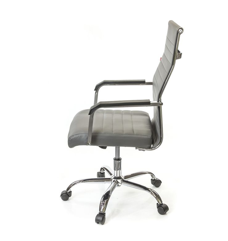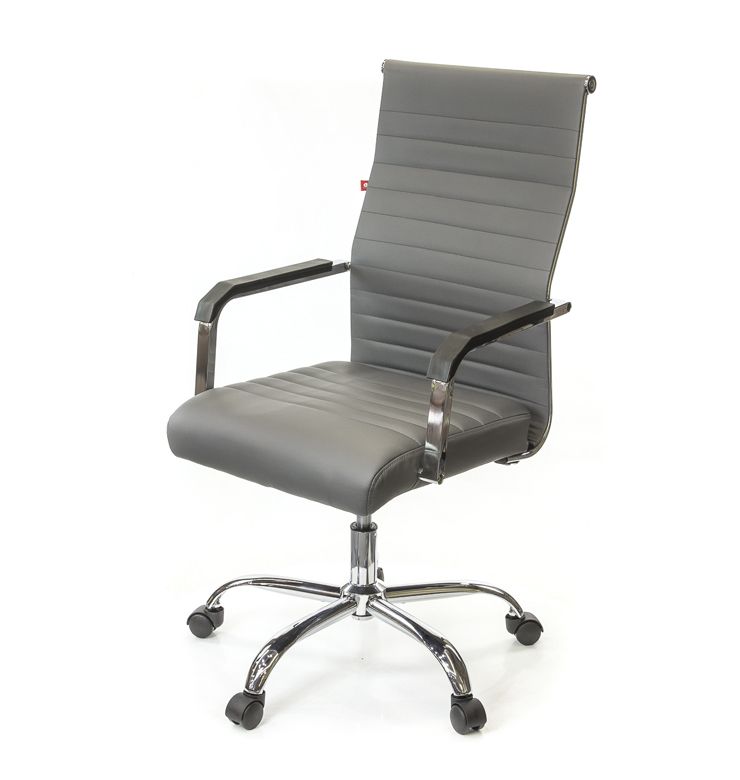 У данной модели оригинальные подлокотники из металла, которые крепятся к основной раме сбоку болтовыми соединениями. Для большего удобства подлокотники оснащены чехлами из черного пластика, которые уберегут ваши руки от контакта с холодным металлом. Высота подлокотников подобрана таким образом, чтобы в нижнем положении сидения кресло можно было задвинуть под рабочий стол и освободить пространство возле стола. Крестовина кресла Кап FX изготовлена из металла. Такая крестовина очень прочная и может выдерживать нагрузку до 150 кг. Блестящее хромированное покрытие металла не только красивое, но и очень прочное. Оно не боится интенсивных нагрузок и не подвержено царапанию. Ролики обеспечат креслу необходимую мобильность. Для данной модели отлично подойдут ролики с хромированными накладками, которые по желанию можно заказать дополнительно. Эргономика конструкции – еще один плюс данной модели. Каркас кресла их металлической трубы имеет небольшой прогиб в поясничной области, что обеспечивает правильную поддержку позвоночника. Кресло в меру жесткое, а значит, будет беречь вашу спину от усталости и сохранит правильную осанку. Металлическая поперечная планка на спинке кресла - это не только элементы декора. Она увеличивает жесткость конструкции, а также ее можно использовать как удобную ручку для перемещения кресла. В сидении использован мягкий наполнитель из мебельного поролона, который отлично держит форму и не просаживается со временем.