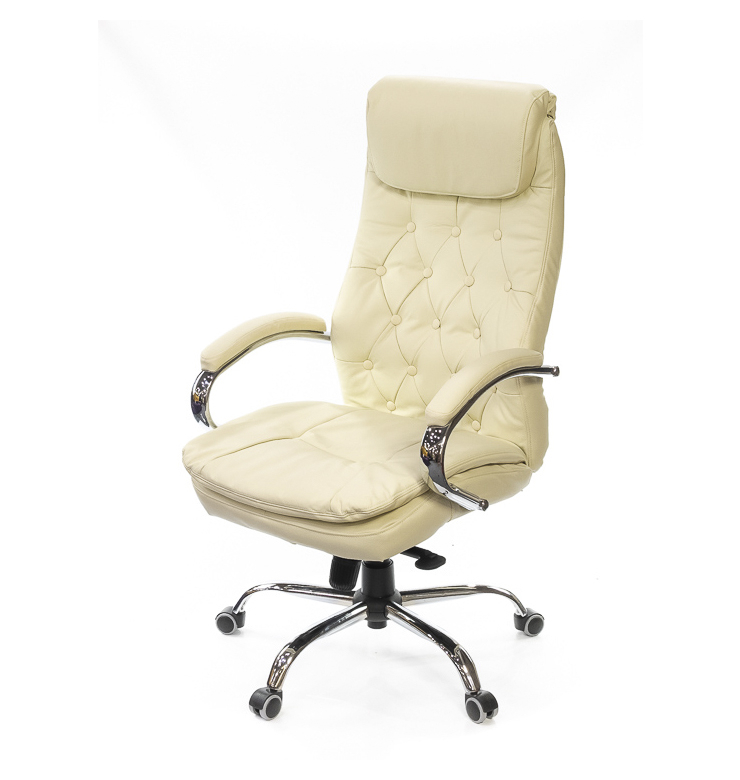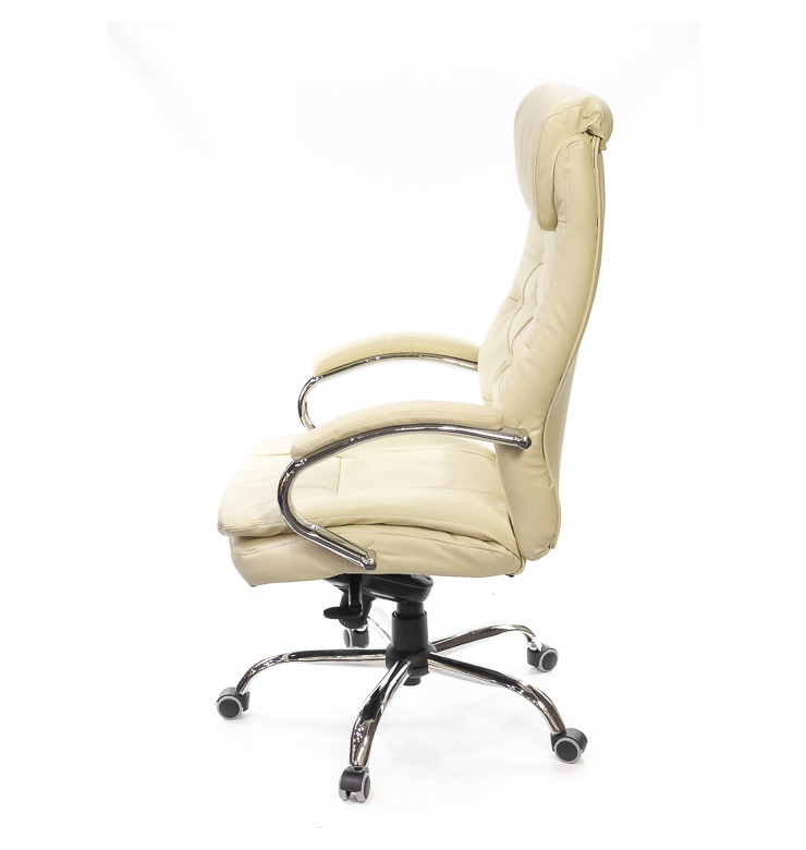 Дугообразная форма крестовины словно играет с Вашим воображением - кажется что ещё миг и она выпрямится. Хромированные элементы, как зеркала, позволяют увидеть силуэты окружающего интерьера. Благородный блеск хромированного металла не потеряет свою красоту со временем, ведь покрытие очень прочное и стойкое к любым воздействиям внешних факторов. Несмотря на большие размеры, кресло легко передвигается с помощью роликов. Для данной модели отлично подойдут ролики со специальной хромированной накладкой, под которой прячутся колёсики. Эти ролики отлично вписываются в дизайн кресла. Спинка кресла имеет правильный изгиб в поясничной области, благодаря чему снимается нагрузка с позвоночника и вы будете продуктивно и комфортно работать, абсолютно не чувствуя усталости даже в конце рабочего дня. Комфортное сидение настолько мягкое, что вы буквально утопаете в нем. Такой эффект создан благодаря мебельному силикону, который использован в накладных подушках кресла.