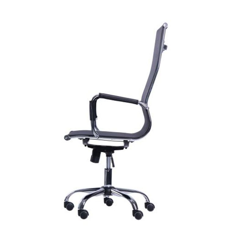 В качестве обивки в данной модели использована нейлоновая сетка. Этот материал обладает высокими показателями эластичности, прочности и износостойкости. Она отлично выдерживает ежедневные интенсивные нагрузки в режиме современной офисной жизни. Сетчатая спинка легко пропускает воздух, а значит сидеть в таком кресле очень комфортно, особенно в жаркую погоду. Механизм качания D-Tilt, установленный в данной модели, даёт возможность переключиться от работы в режим приятного релакса, не покидая рабочее место. Смещённая ось основания увеличивает амплитуду раскачивания для ещё большего комфорта. Данный механизм имеет индивидуальную настройку под вес пользователя. Вернуть в рабочее положение кресло можно одним движением руки. Газлифт позволит отрегулировать высоту кресла так, чтобы вы устроились в нем с максимальным комфортом в соответствии с вашим ростом. У данной модели оригинальные подлокотники из плоской металлической трубы, которая имеет винтовые изгибы в местах крепления к креслу. Эта деталь в сочетании с усовершенствованным скрытым креплением увеличивает жёсткость и надёжность конструкции каркаса кресла. Высота подлокотников подобрана таким образом, чтобы в нижнем положении сидения кресло можно было задвинуть под рабочий стол и освободить пространство возле стола.