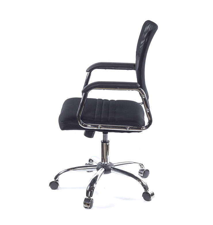Черные пластиковые накладки на металлическом каркасе - это ещё одна из деталей кресла Орсо. Поверхность пластика текстурированная для лучшего контакта с руками. Форма и размер подобраны так, чтобы удобно было разместиться человеку среднего роста. Высота подлокотников позволяет придвинуть кресло максимально близко к столу. Крестовина кресла Орсо изготовлена из металла. Блестящее хромированное покрытие металла не только красивое, но и очень прочное. Оно не боится интенсивных нагрузок и не подвержено возникновению царапин. Пластиковые ролики обеспечат креслу необходимую мобильность и подойдут для мягких напольных покрытий, на пример для ковролина. Для паркета или ламината рекомендуем заменить их на прорезиненные. Для данной модели также подойдут ролики со специальными хромированными накладками под стиль кресла, которые по желанию можно заказать дополнительно. Модель имеет компактные габариты, что очень удобно для экономии пространства. Но при этом сидение достаточно вместительное и удобное. Спинка средней высоты, с продуманной эргономикой. Дополнительную поддержку спины обеспечивают специальная мягкая накладка с карманом в поясничной области, с помощью которого можно увеличить поясничную поддержку, добавив в карман немного поролона. Посадка достаточно удобная, сидение большое и мягкое. В основе сидения используется гнутоклеёная фанера с поролоновым наполнением под обивкой. Углубление по центру сидения и скошенный передний край уберегут сосуды ног от пережимания, а ноги от накопления усталости к концу рабочего дня.