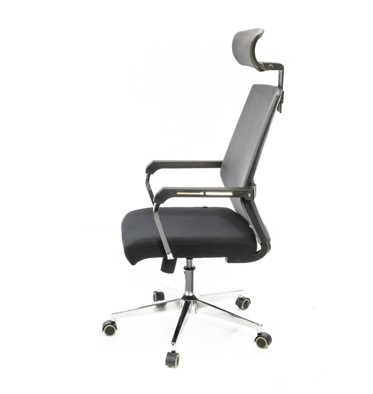 Крестовина кресла Осима изготовлена из хромированного металла. Она цельнолитая, с четкими прямыми краями, что подчеркивает стилистику кресла. Такая крестовина очень прочная и может выдерживать нагрузку до 150 кг. Блестящее хромированное покрытие металла не только красивое, но и очень стойкое. Оно не боится интенсивных нагрузок и не подвержено царапанию. Ролики обеспечат креслу необходимую мобильность. В данной модели они прорезиненные и подойдут для всех типов покрытий. Для данной модели также можно приобрести ролики с хромированными накладками, которые более гармонично будут смотреться с блестящей металлической крестовиной. Высокая эргономичная спинка имеет прогиб в поясничной области и специальный пластиковый валик, которые обеспечивают вашей спине комфортную поддержку, а вам хорошее самочувствие даже в конце насыщенного рабочего дня. Боковая поддержка, сформированная каркасом, поможет обегать позвоночник и сохранит правильную осанку. В сидении кресла используется прочное основание из гнутоклееной фанеры, которое совместно с поролоновым наполнением формируют удобную посадку. Подголовник, состоящий из изогнутой пластиковой рамы и сетчатой обивки, крепится к верхней части спинки. Подголовник удобный, дугообразной формы. Он регулируется по высоте с помощью винтового крепления. Движимая часть подголовника поворачивается в вертикальной плоскости, подстраиваясь под положение вашей головы, именно так, как вам удобно. Он снимет излишнюю нагрузку с шеи и даёт возможность максимально отдохнуть всему телу.