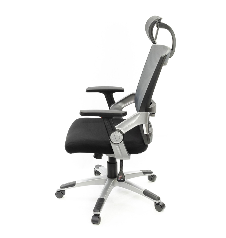 Механизмы. Встроенный механизм качания повышенной комфортности анификс даёт возможность устроить для себя любимого сеанс релакса, не прерывая важный телефонный звонок или продолжая составлять грандиозные планы покорения бизнес-олимпа, а после заняться текущими делами, зафиксировав кресло в удобном положении. Надёжный газлифт даёт возможность изменить высоту кресла с учётом вашего роста. Пластиковые подлокотники у данно модели - эксклюзивные. Они состоят из 2 частей разного цвета. Подвижная часть Т-образной формы из черного пластика имеет оригинальный дизайн крепления и может изменять угол наклона. Рабочая плоскость, на которую опираются руки, достаточно большая и имеет слегка шероховатую текстурированную поверхность для того, чтобы руки не соскальзывали во время работы. Крестовина кресла изготовлена из серебристого пластика. На окончаниях лучей крестовины установлены черные текстурные накладки, и это сочетание цветов перекликается с цветами подлокотников. Такие накладки-протекторы служат защитой от повреждений и царапин, а также предотвращают соскальзывание ног для большего удобства сидящего. Пластиковые ролики обеспечат креслу необходимую мобильность и подойдут для мягких напольных покрытий, на пример для ковролина. Для паркета, плитки или ламината рекомендуем заменить их на прорезиненные, которые можно заказать дополнительно. Данная модель имеет оптимальные габариты, достаточно высокую спинку и регулируемый по высоте подголовник, а значит отлично подойдёт для людей и высокого, и среднего роста. Посадка средней жесткости, сидение имеет небольшое углубление по центру и скошенный передний край - именно то, что нужно для длительного времяпровождения на одном месте. В основе сидения используется гнутоклеёная фанера с поролоновым наполнением под обивкой.