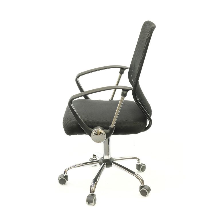 В данной модели установлен механизм пиастра. Этот механизм дает возможность отрегулировать высоту кресла так, чтобы вы устроились в нем с максимальным комфортом в соответствии с вашим ростом. У данной модели стильные комбинированные подлокотники из черного пластика и металлической трубы. Поверхность пластика текстурированный, благодаря чему руки не соскальзывают в процессе работы. Металлическая вставка гармонирует с хромированной крестовиной, создавая единый неповторимый ансамбль. Высота подлокотников в нижнем положении сидения кресла имеет высоту, которая дает возможность задвинуть кресло под рабочий стол для освобождения окружающего пространства. Крестовина кресла Тета изготовлена из хромированного металла. Такая крестовина может выдерживать нагрузку до 120 кг. Блестящее хромированное покрытие металла не только красивое, но и очень прочное. Оно не боится интенсивных нагрузок и не подвержено царапанью. Ролики обеспечат креслу необходимую мобильность. Для данной модели отлично подойдут ролики с хромированными накладками, которые по желанию можно заказать дополнительно. Кресло Тета в меру жесткое, а значит, будет беречь вашу спину от усталости, и сохранит правильную осанку. Находиться в нем комфортно, что хорошо для длительного пребывания на одном месте. Эргономичность спинки обеспечивается за счет правильного изгиба дугообразного каркаса верхней горизонтальной плоскости каркаса. Такая форма создает надежную и обволакивающую поддержку спины.