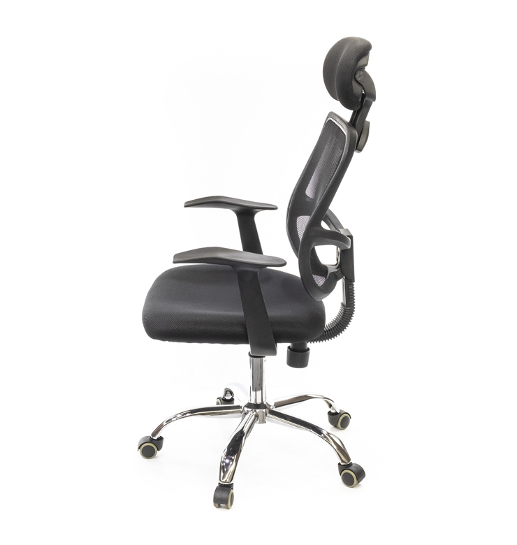 Металлическая крестовина обеспечивает креслу прочность и устойчивость. Она рассчитана на нагрузку до 120 кг. Хромированная поверхность металла наполняет помещение благородным блеском. Такое покрытие не потеряет свою красоту со временем, ведь оно очень прочное и стойкое к всевозможным внешним факторам. В данной модели установлены более практичные и универсальные прорезиненные ролики, которые отлично подойдут и для твердых напольных покрытий, таких как паркет или ламинат, и для ковролина. Эргономичная спинка имеет прогиб в поясничной области и специальный пластиковый валик, которые обеспечивают вашей спине комфортную поддержку, а вам хорошее самочувствие даже в конце насыщенного рабочего дня. Боковая поддержка, сформированная каркасом, поможет обегать позвоночник и сохранять правильную осанку. В сидении кресла используется прочное основание из гнутоклееной фанеры, которое совместно с поролоновым наполнением формируют удобную посадку. Подголовник мягкий, удобный, также обтянут сотовой тканью. Он снимет излишнюю нагрузку с шеи и даёт возможность максимально отдохнуть всему тела. Подголовник регулируется по высоте и по положению наклона. При желании подголовник легко снимается и устанавливается с помощью винтового крепления. Компактные габариты позволяют разместить кресло даже на ограниченном пространстве. Оно подойдет для человека небольшого роста или подростка.