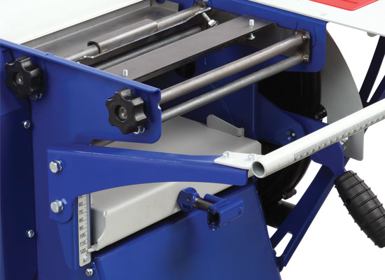 SDMR-2500 имеет комбинированную линейку, аналогичную станкам серии SDM. С помощью кареток, перемещающихся вдоль направляющих, можно настроить необходимое положение параллельной направляющей (для строгания и пиления) и поворотного кронштейна (для распиловки под углом). Строгальный вал, цельный, стальной, с новой конструкцией крепления лезвий. Оснащен тремя ножами, что обеспечивает более тонкую и чистую обработку. Предусмотрено встроенное устройство отключения от источника питания при перегреве асинхронного двигателя. Для подключения внешних вытяжных устройств удаления отходов резания предусмотрено три патрубка: на кожухе для удаления стружки при строгании и рейсмусовании (63 мм), на кожухе пильного диска (38 мм), на ограждении пильного диска (28 мм).