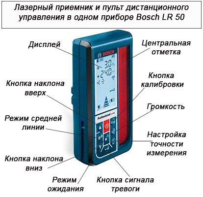 Лазерный приемник LR 50 с четко читаемым дисплеем, удобными и понятными кнопками управления необходим для быстрого нахождения лазерного луча при измерениях на улице или на больших расстояниях внутри помещения.
