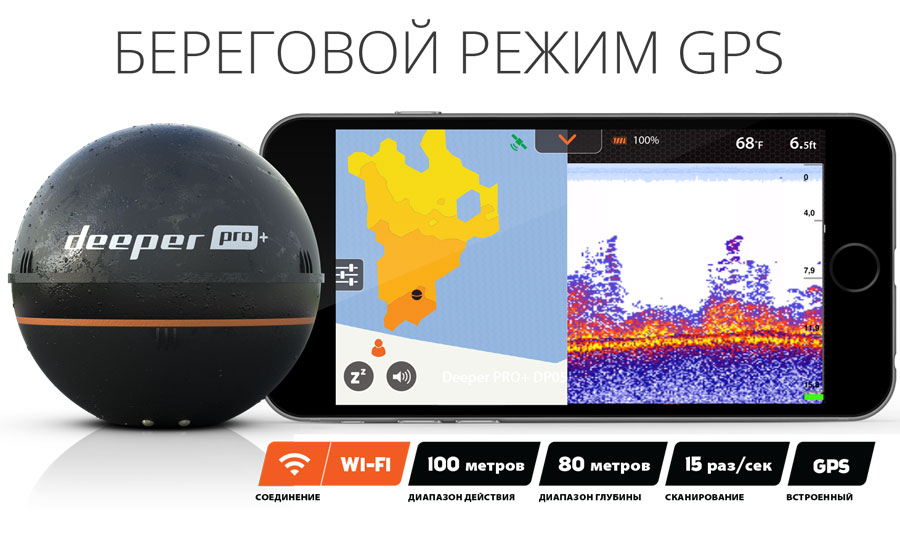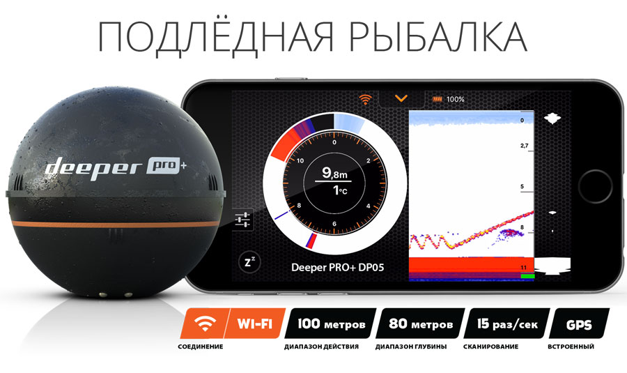 Умный Эхолот Deeper PRO+ может быть заброшен в любое место. Он располагается на поверхности воды и передает подробную информацию о дне и всей толще воды (глубина, рельеф дна, температура, растительность, расположение рыбы и т.д.) прямо на экран вашего смартфона или планшета. Портативный и простой в подключении Умный Эхолот Deeper PRO+ может быть использован для рыбалки с берега, причала, моста, лодки, байдарки или каяка. Он также является лучшим беспроводным эхолотом для подледного лова, что делает его наиболее универсальным прибором на рынке.