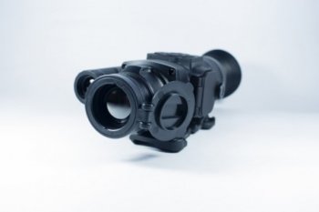 Широкоугольный объектив F35/1.1 с оптическим увеличением 2х и германиевой передней линзой позволяет с комфортом рассматривать цели на коротких и средних дистанциях. Стрелкам доступен цифровой зум с шагом х1, х2 и х4. Угол поля зрения при минимальном увеличении равен 7,5° на 5,7° что в линейном выражении будет соответствовать области пространства в 13,1 х 10 метров на удалении в 100 метров. Этого вполне достаточно для того, чтобы отыскать зверя на открытом пространстве и при необходимости максимально приблизить изображение, воспользовавшись опцией цифрового зума. Фокусировка объектива – ручная, путем вращения низкопрофильного кольца. Минимальная дистанция – 5 метров. манипулировать тонкими настройками получится даже в зимних перчатках, на кольце фокусировки имеется тактильный выступ для пальца.