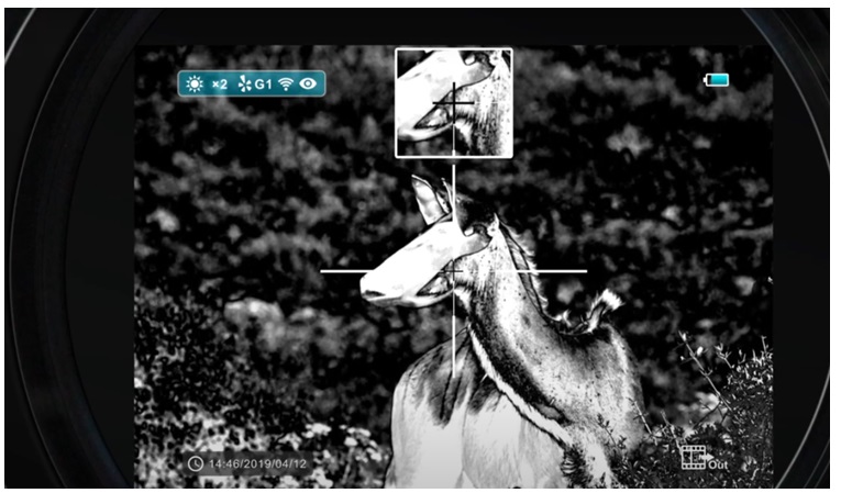 Наличие функции улучшения качества изображения «Ultra-Clear», позволяет значительно повысить качество картинки при наблюдении в неблагоприятных условиях. В основе лежат уникальные алгоритмы обработки изображения, повышающие общую детализацию и контраст. Теперь для наблюдения доступны более мелкие части объекта и элементы окружающей обстановки (листва, трава и т.д.). Применение данной опции рекомендовано для точной идентификации объекта и наведения оружия в «убойную» зону трофея.