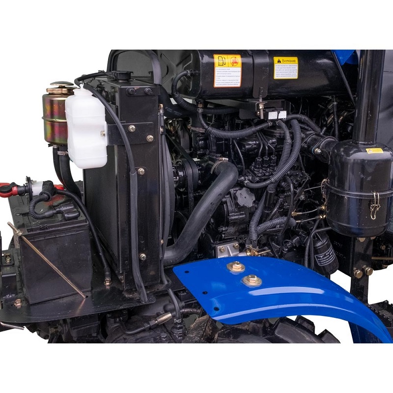 На тракторе установлен двигатель увеличенного объёма, по сравнению с 24 сильными тракторами других торговых марок (1,9 л. вместо 1,53 л.), что дает заметное преимущество в крутящем моменте на низких оборотах перед тракторами аналогичной мощности. Модернизированная усиленная коробка передач с отдельным реверсом обеспечивает 9 скоростей движения вперед и 9 скоростей назад, что позволяет выбрать оптимальный режим работы и быстро менять направление движения. Малошумная трансмиссия, мощный навесной механизм, быстросъемное буксировочное устройство, гидравлическое рулевое управление — все узлы трактора задают новые стандарты в классе 24-сильных минитракторов.