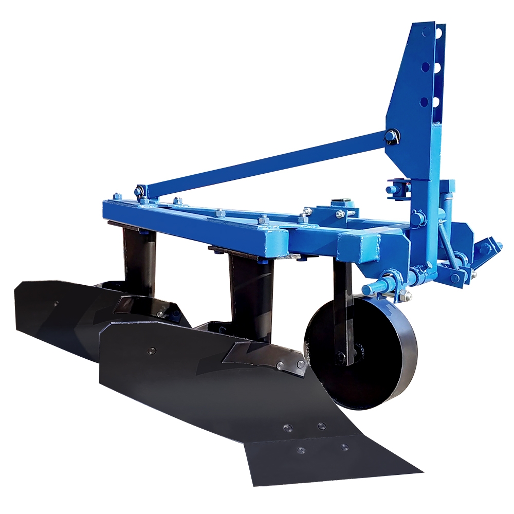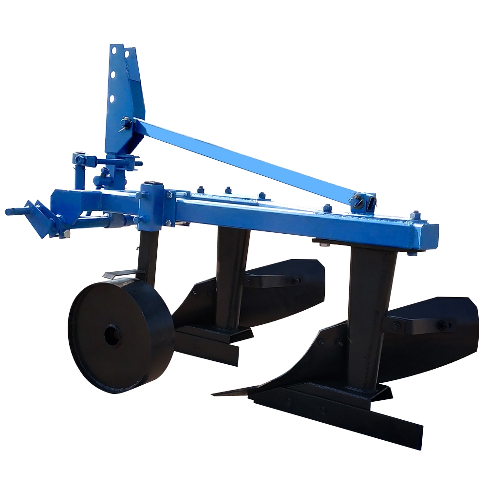 Плуг лемешный двухкорпусной усиленный предназначен для основной вспашки с полным вращением пласта почвы. Лемехи плугов удлиненные. Отвал увеличен с задней опорой и дополнительным стерневым отвальчиком для заворота пласта. Полевые доски увеличенной длины. Стойки повышенной жесткости из сварной трубы переменного сечения, крепятся к раме в трех точках. Рама сварная из трубы квадратного сечения. Крепление рамы 3-точечное. Глубина вспашки регулируется усиленным опорным колесом при помощи винта. При помощи дополнительных регулирующих винтов можно осуществить более точные настройки агрегата, что в свою очередь обеспечит хорошее переворачивание пласта почвы.