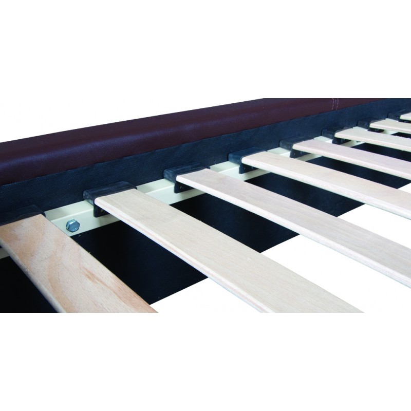 Внешний вид изделий из данного материала сохраняется продолжительное время и обладает очень долгим сроком эксплуатации. ДСП - это материал, который не подвержен влиянию перепадов температур и может использоваться как в прохладных, так и в жарких помещениях. Кровать оснащена гнутоклееными ламелями, которые дают максимальный ортопедический эффект и отличаются амортизирующим эффектом, что способствует естественному положению позвоночника во время отдыха. Кроме того, гнутоклееные ламели способствуют длительной эксплуатации матраса за счет регулярной циркуляции воздуха под ним.