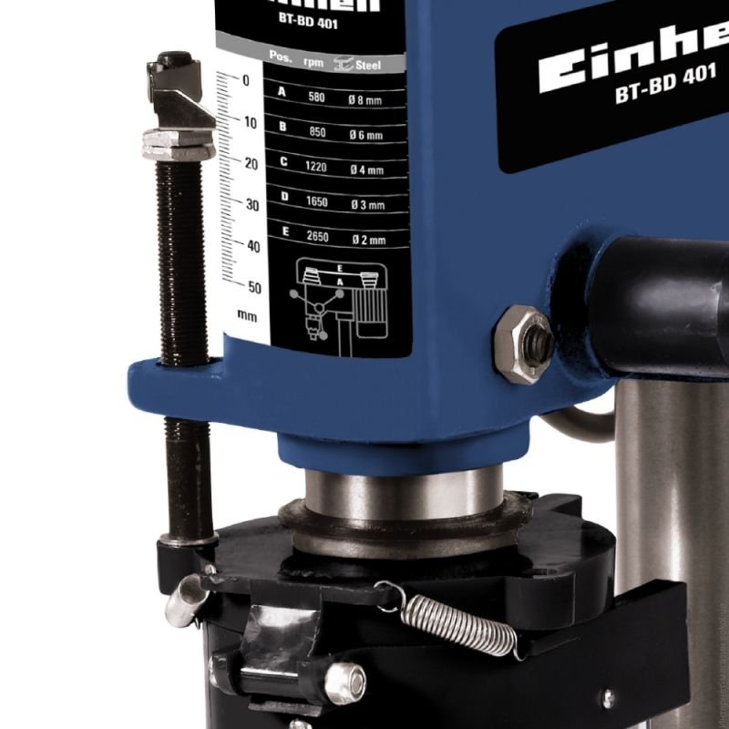 Сверлильный станок Einhell BT-BD 401 обеспечивает безукоризненную работу с различными материалами, возможности станка позволяют добиться высокой точности и качестве сверления, при этом доступен широкий выбор настроек для обеспечения обработки металла, пластика, и древесины. Станок оснащен 350 Вт электродвигателем, частота вращения которого составляет 1400 об/мин. Регулируемая частота вращения шпинделя в диапазоне – 580-2650 об/мин, с возможностью установки в пяти доступных ступенях. Используется сверлильный патрон 1,5-13 мм, с глубиной сверления в 50 мм. Также станок оснащен рабочим столом 160х160 с техническими отверстиями под установку зажимного инструмента. Доступна регулировка наклона стола в диапазоне –45 до +45 градусов. Дополнительно стоит отметить наличие откидного щитка для защиты от стружки. Станок имеет небольшой вес в 18,3 кг, отличается прочностью и устойчивостью. Это сверлильное оборудование позволит увеличить производительность выполняемых работ и может быть установлено в любом производственном цеху или мастерской.