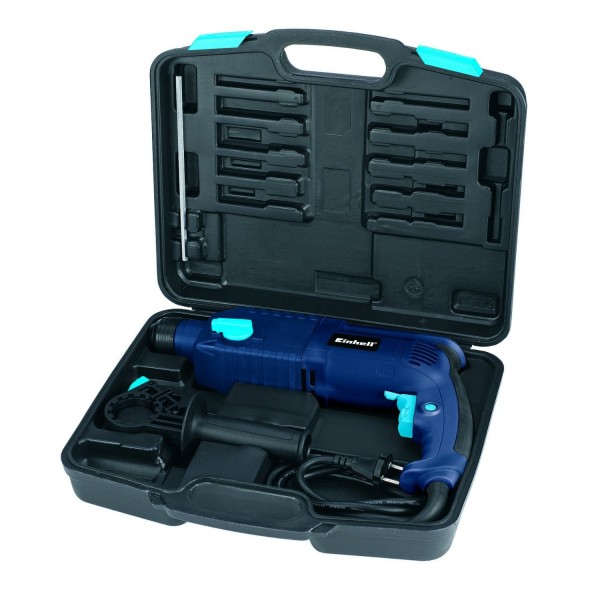 Аппарат Einhell Blue BT-RH 920 E предназначен для работы от электрической сети 230 В при частоте 50 Гц, а потребляемая им мощность не превышает 920 Вт. Инструмент с индексом BT-RH 920 E серии Blue очень удобен тем, что дает возможность сверления отверстий в бетоне диаметром до 26 мм при 0-5185 уд/мин и 0-980 об/мин, а сила удара перфоратора Айнхель BT-RH 920 E равна 2,5 Дж. Электрический перфоратор BT-RH 920 E от немецкого завода-производителя Einhell оснащен высокоэффективным ударным механизмом, мощным электрическим приводным двигателем, патроном SDS-Plus, блоком реверсивного движения, регулируемой дополнительной рукояткой и глубиномером.