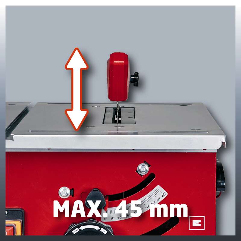 - Бесступенчатое регулирование высоты реза 0 - 45 мм