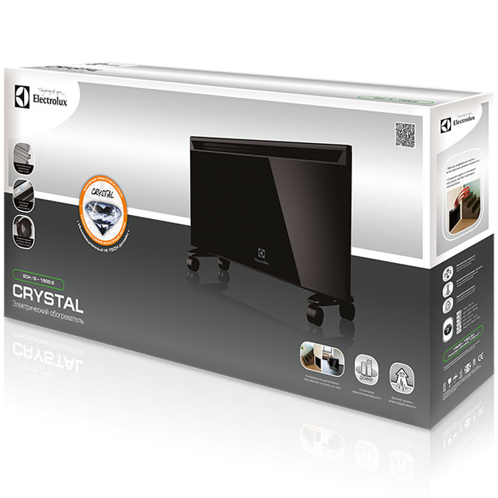 Электрический конвектор Crystal ECH/G – 1500 E – это результат последних разработок Electrolux в сфере высоких технологий и современного дизайна. Лицевые панели обогревателя выполнены из высококачественного монолитного термостойкого стекла черного цвета – экологически чистого и безопасного материала. Прибор безопасен и экологичен: он не сушит воздух и не нарушает естественную влажность в помещении.