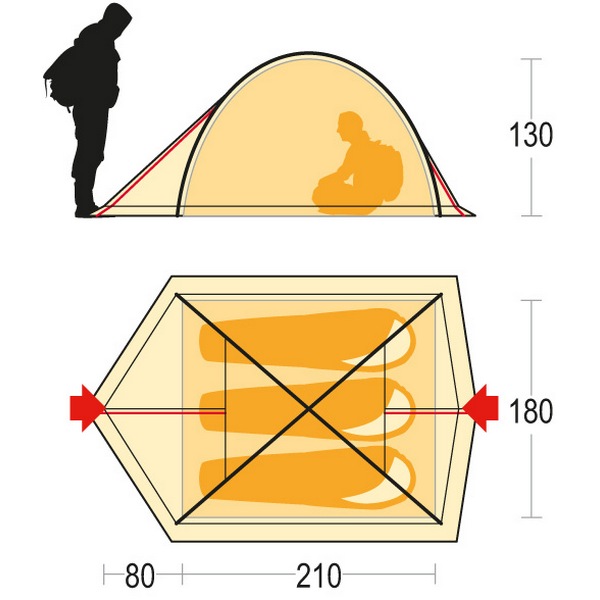 Внутренняя палатка (ДхШхВ), мм: 2100 х 1800 х 1300