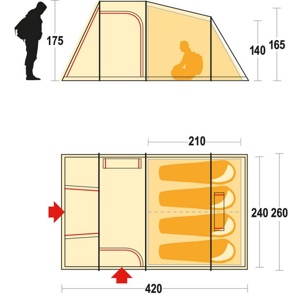 Внешняя палатка (ДхШхВ), мм: 4200 х 2600 х 1750