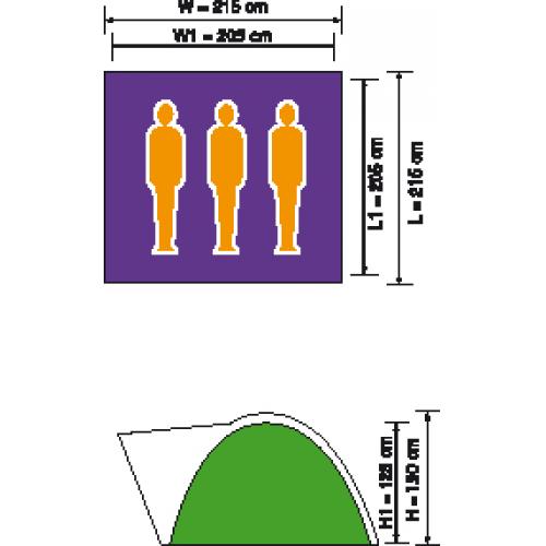 Внешняя палатка: Нейлон 190Т с полиуретановым покрытием и дополнительно проклеенными швами 1500мм