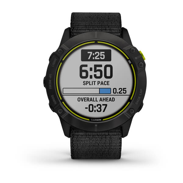 Enduro оснащений постійно увімкненим 1,4-дюймовим дисплеєм, оптимізованим до сонячного освітлення для зручного перегляду навіть у русі. Він містить наші найкращі тренувальні функції та надзвичайно ефективний процесор, який дозволяє сконцентруватися на перегонах - замість того, щоб перейматись заряджанням батареї.Міцна, стійка до погодних умов конструкція налаштована на суворі умови перегонів завдяки нержавіючій сталі або легкому титановому корпусу з покриттям DLC. Крім того, він має надзвичайно легкий спортивний ремінець-петлю, еластичний, міцний і регульований.Отримайте до 80 годин автономної роботи в режимі GPS, до 300 годин у режимі максимальної економії заряду та до 65 днів у режимі розумного годинника із сонячною зарядкою.Переглядайте, як різні налаштування та датчики впливають на тривалість автономної роботи вашого годинника, та на ходу вносьте зміни в налаштуваннях, щоб продовжити цю тривалість.V02 max для трейлового бігу оцінює рівень серцево-судинної підготовки трейлових бігунів, та та надає рекомендації на основі різних умов траси і рельєфу, які можуть вплинути на ефективність бігу.Використовуйте функцію для ультрабігу з таймером відпочинку і реєструйте час, який ви проводите на пунктах допомоги.Використовуйте планувальник підйомів ClimbPro, щоб переглядати інформацію в режимі реального часу про ваші поточні та майбутні підйоми, включно з градієнтом, відстанню та приростом висоти. Покращення траси ClimbPro також надають інформацію про спуски та рівнини - для додаткової обізнаності.Відстежуйте деталі кожної поїздки за допомогою показників їзди на гірських велосипедах, а також спеціальних параметрів “grit” та “flow”, які оцінюють складність траси і те, на скільки плавно ви спускаєтесь, надаючи вам оцінку, яку потрібно перевершити наступного разу.Підготуйтеся до будь-якого середовища. Завдяки визначенню аклімації за теплом і висотою переглядайте, як ваше тіло тримається в різних умовах навколишнього середовища.Переглядайте розширені показники тренувань, включно з динамікою бігу, VO2 max з поправкою на тепло та висоту, рекомендаціями щодо відновлення та іншим.Дуже важливо давати своєму тілу час на відновлення між тренуваннями. Після кожного тренування вбудовані рекомендації з відновлення повідомлятимуть вам, скільки часу слід відпочити перед черговими зусиллями.Щоб користуватися тренувальними вказівками, які враховують ваш рівень фізичної підготовки, отримуйте щоденні пропозиції з бігу та велоїзди на основі вашого поточного тренувального навантаження та статусу тренувань.Доступ до декількох глобальних навігаційних супутникових систем (GPS, GLONASS та Galileo) для відстеження у складніших умовах, ніж при одному лише GPS.Орієнтуйтесь на наступному маршруті завдяки датчикам ABC, включно з висотоміром для даних про висоту, барометром для відстеженням погоди та 3-осьовим електронним компасом.Використовуйте попередньо завантажені профілі активності для трейлового бігу, плавання, бігу, їзди на велосипеді, ходьби, веслування, катання на лижах, гольфу тощо.Перша у своєму роді функція PacePro допомагає вам тримати темп з орієнтованими на результат вказівками, коли ви біжите маршрутом.Будьте поінформованими, перебуваючи на снігу. Цей попередньо завантажений профіль може розрізняти спуск на лижах і підйом. Він автоматично показує дані, с