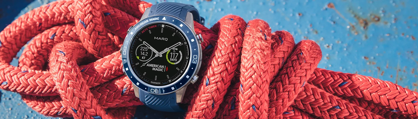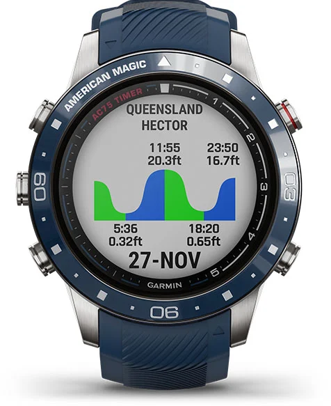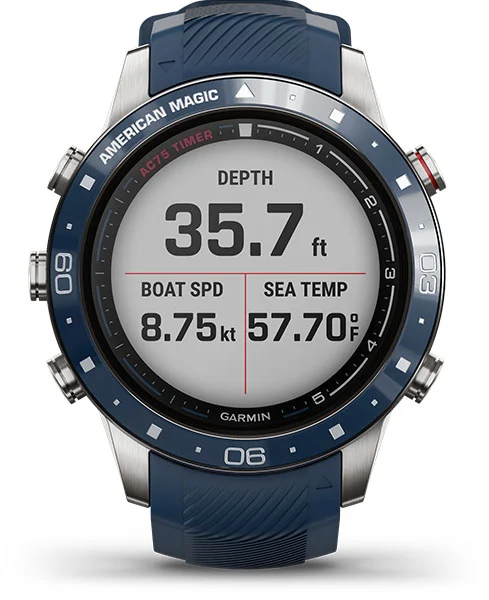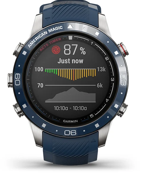 Расскажите другим, за кого вы болеете, с помощью этих роскошных умных часов с куполообразной сапфировой линзой, постоянно включенным дисплеем и названием команды American Magic, выгравированной прямо на лицевой панели.