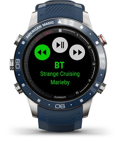 Синхронизируйте плейлисты из своих учетных записей служб потоковой передачи музыки, таких как Deezer, Amazon Music и Spotify ®, с часами, чтобы слушать их без телефона. MARQ Captain: American Magic Edition может хранить до 2000 песен.