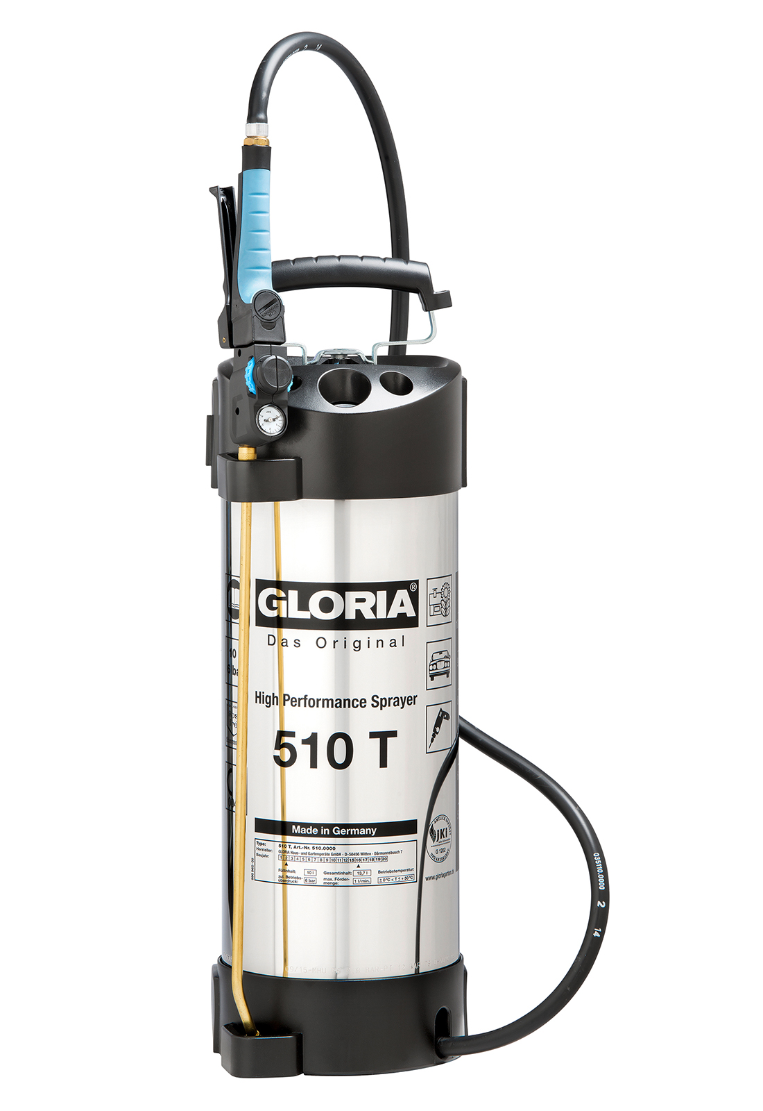 У высокопроизводительного распылителя 510 T напорный резервуар из нержавеющей высококачественной стали, который может вместить до 10 л распыляемого средства и подходит для рабочего давления макс. 6 бар.