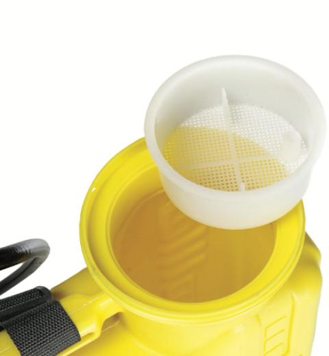 Быстродействующий клапан-отсекатель с интегрированным манометром, латунной трубкой распыления с конусным соплом, пластиковым насосом, рычагом насоса, используемым с левой или с правой стороны с креплением распылительной трубки, мягким плечевым ремнем с системой быстрого натяжения, эргономичным резервуаром, подгоняемым по контурам спины, эргономичным комфортным быстродействующим клапаном с манометром и мягкой вкладкой